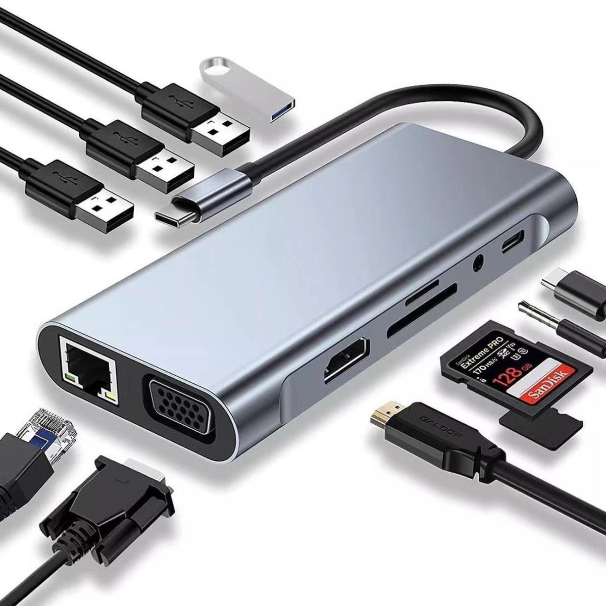 12 in-1 docking station Type C to hdmi notebook computer multi-conversion concentrator network multi-interface expansion