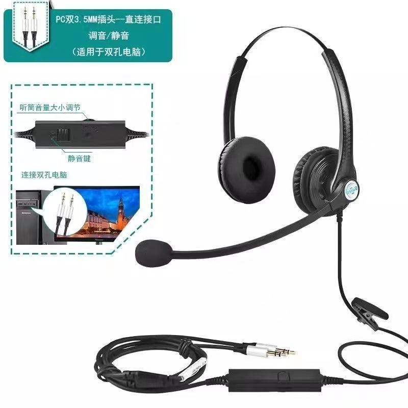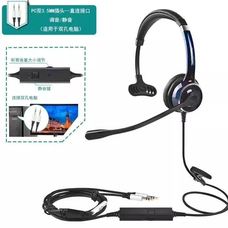 Bain, Head-mounted Call Center Customer Service Headset/Earbuds, 3.5mm Plug, One-piece, Desktop Computer Compatible