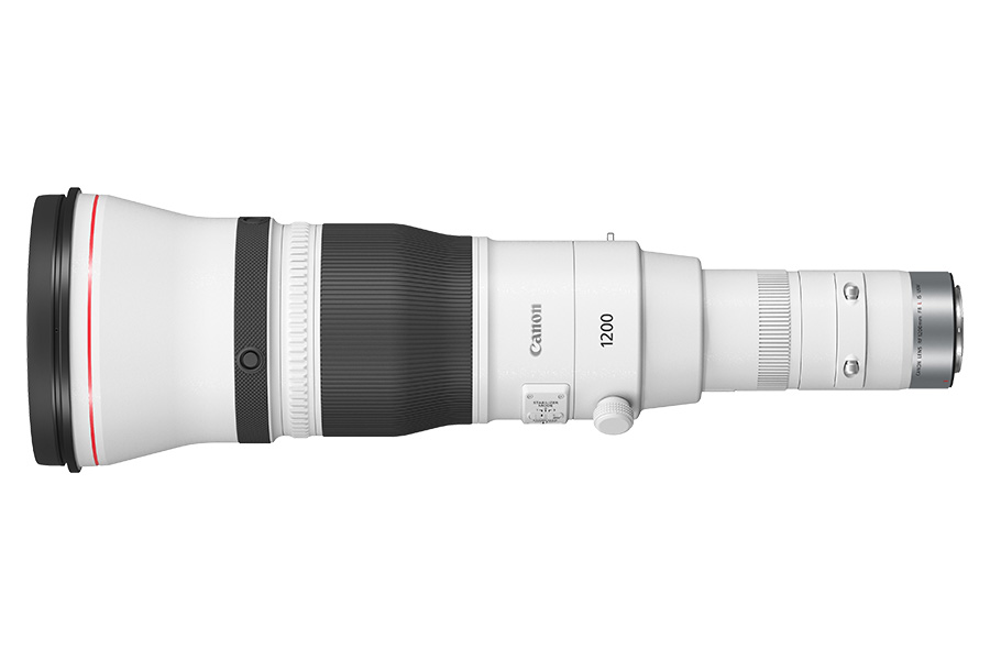Canon RF 1200 mm F8 L IS USM Mount / Format: Canon RF – full-frameFocal Length: 1200 mm (fixed)Aperture: f/8 fixedOptics: 26 elements / 18 groups • 2 Fluorite, 1 Super-UD, ASC & Fluorine coatingsAperture Blades: 9Stabiliser: 4 stops optical IS, 5.5 stops Co-ordinated ISMinimum Focus: 14 m (0.29× max mag.)Drop-in Filters: 52 mm rear (supplied)Dimensions / Weight: 168 mm Ø × 537 mm / 3 340 g