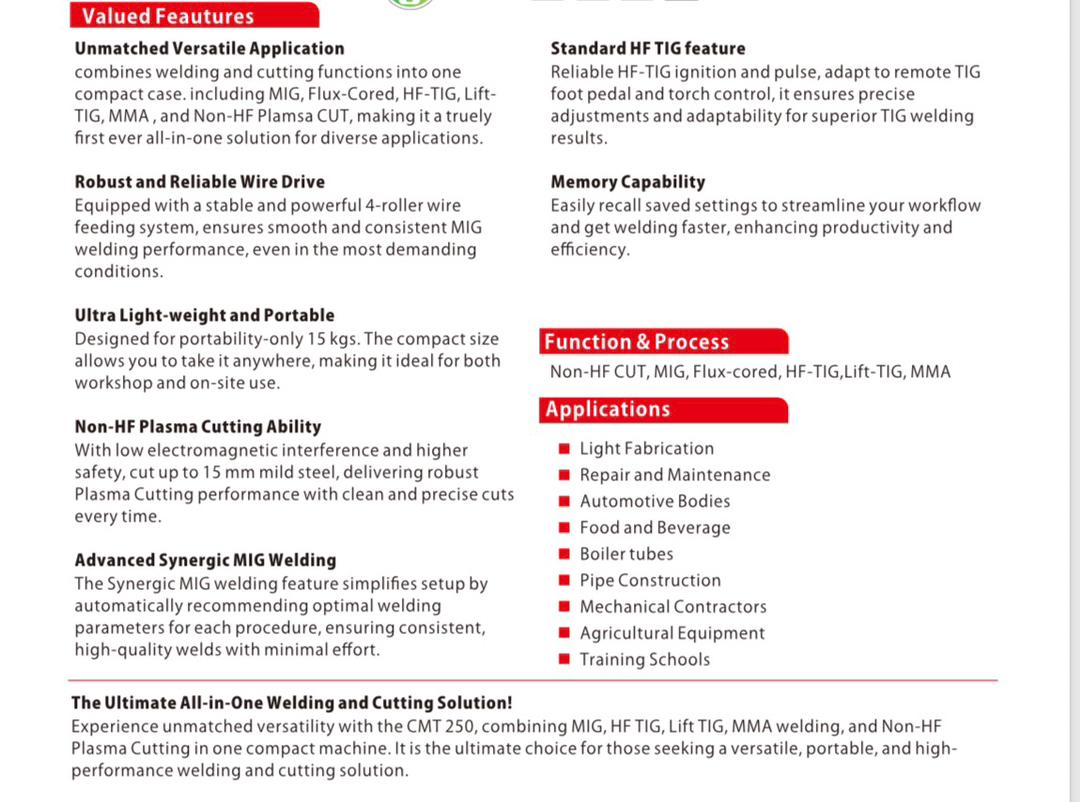 TIG, MMA,and Non-HF Plamsa CUT, making it a truely