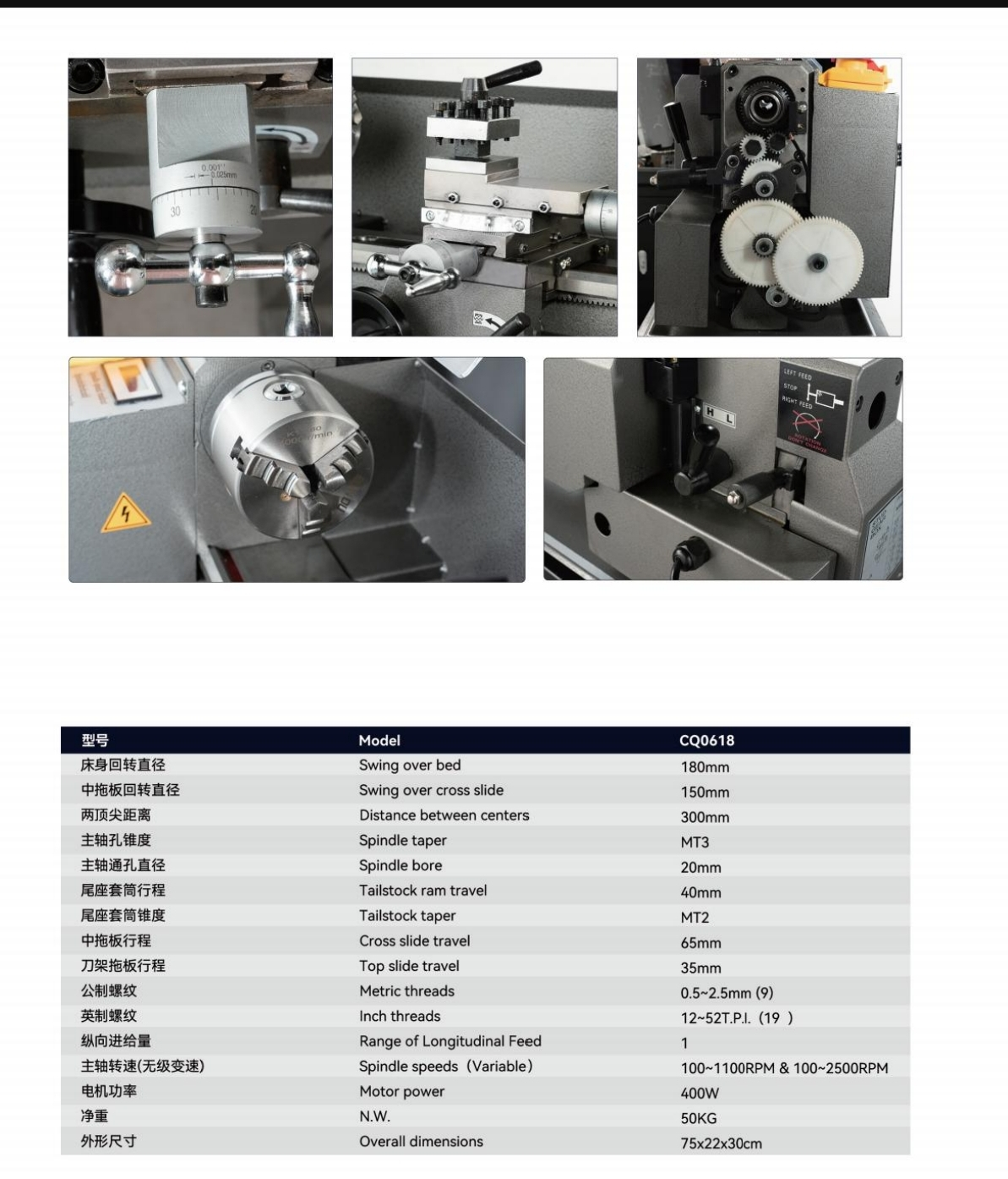 gear, 50~1100&100~2500r/min, convenient processing of different workpiece needs.