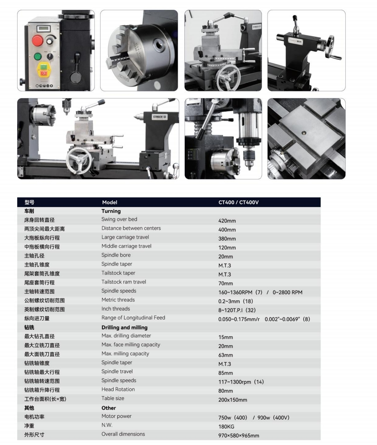 8. The CT400 series machine tools are available in two models: belt