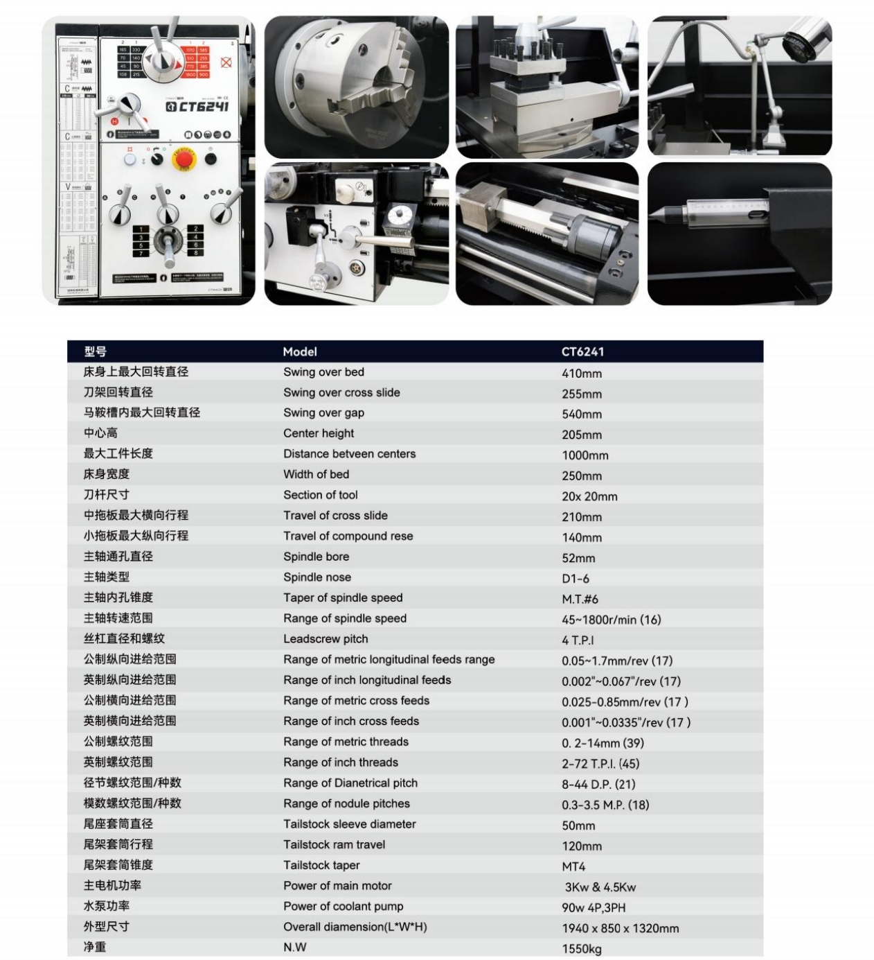 5. Various types of threads can be turned without changing the hanging wheel.