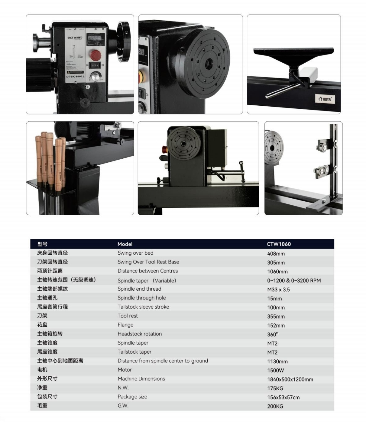 Large processing range, 1060mm ultra-long turning length, turning large disc type workpiece, just rotate the headstock, can be