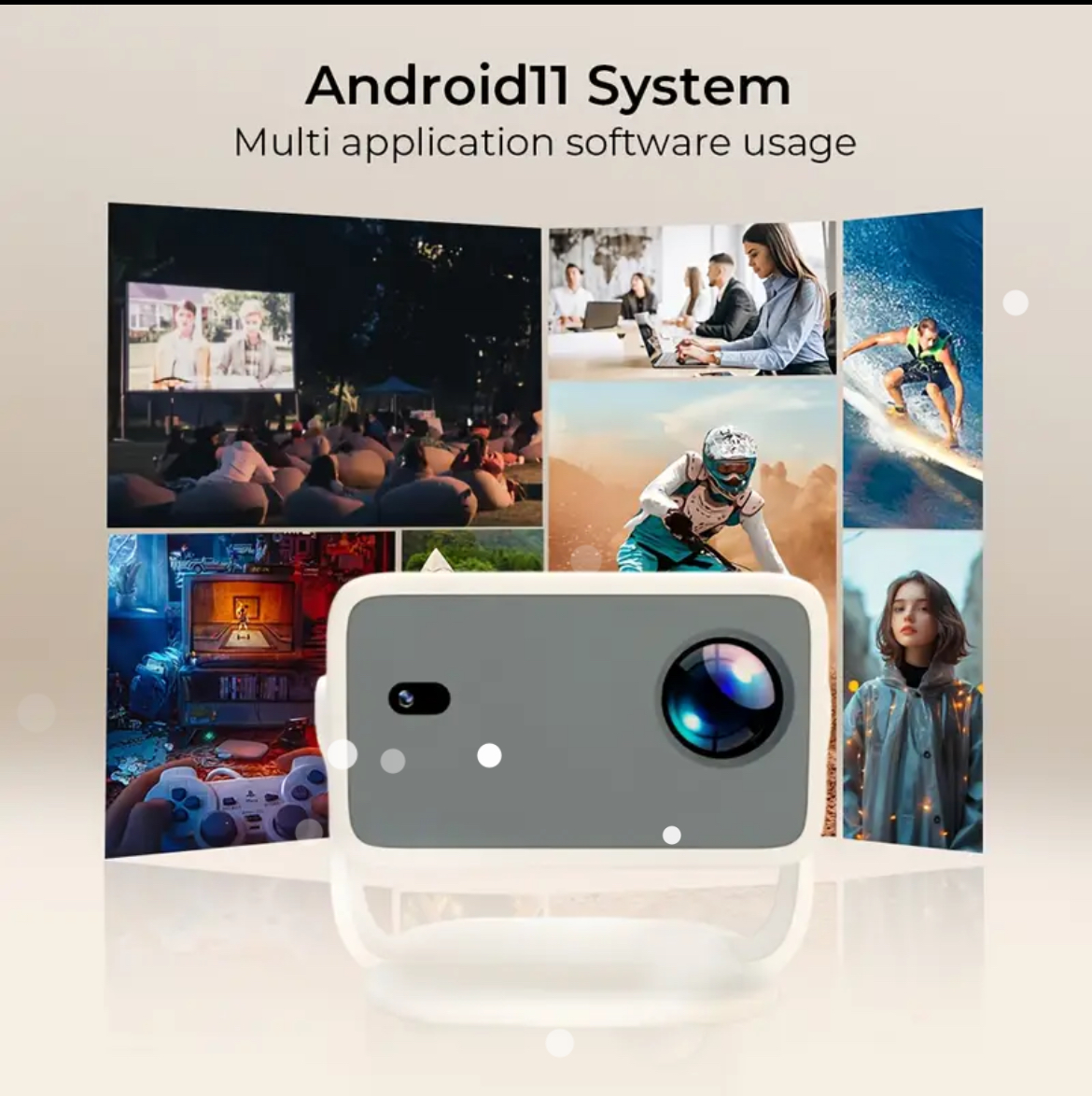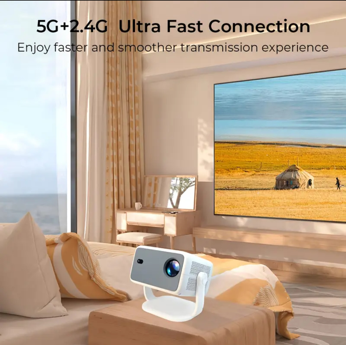 Android Portable Beam Projector - 1080P & 4K Support, Dual WiFi6, 20000 Lumens, 360° Rotating Bracket, Auto Focus & Keystone, Obstacle Avoidance - Immersive Smart Home Cinema Experience