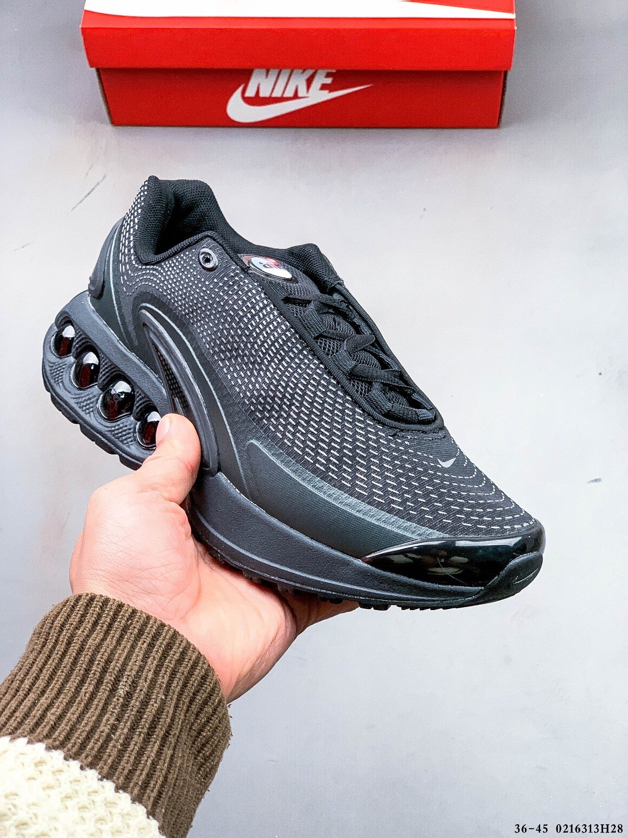 Nike Air Max Dn 2024 new air cushion running shoes The new shoe model adopts four cylindrical warehouse designs on the same side, which not only has anti-slip and wear-resistant functions, but also with a circle of soft foam material around, providing a new composite foot feeling of 80%