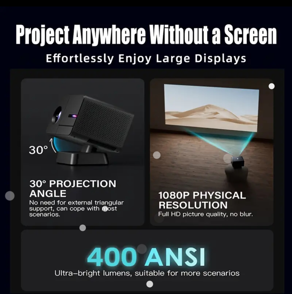 Smart Projector Native 1920*1080P 400ANSI Brightness Auto