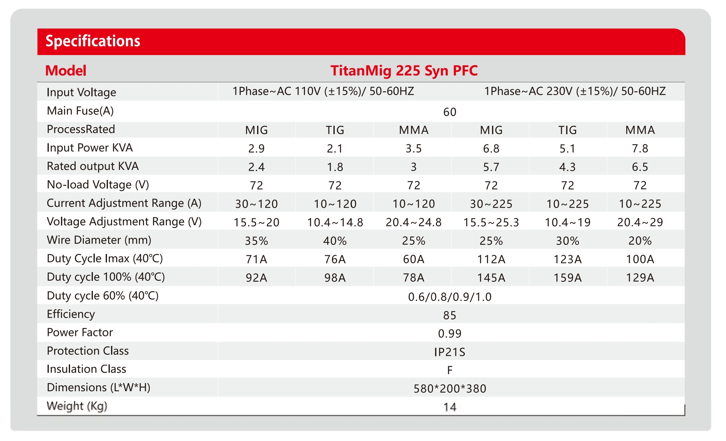 TitanMig 225 Syn PFC