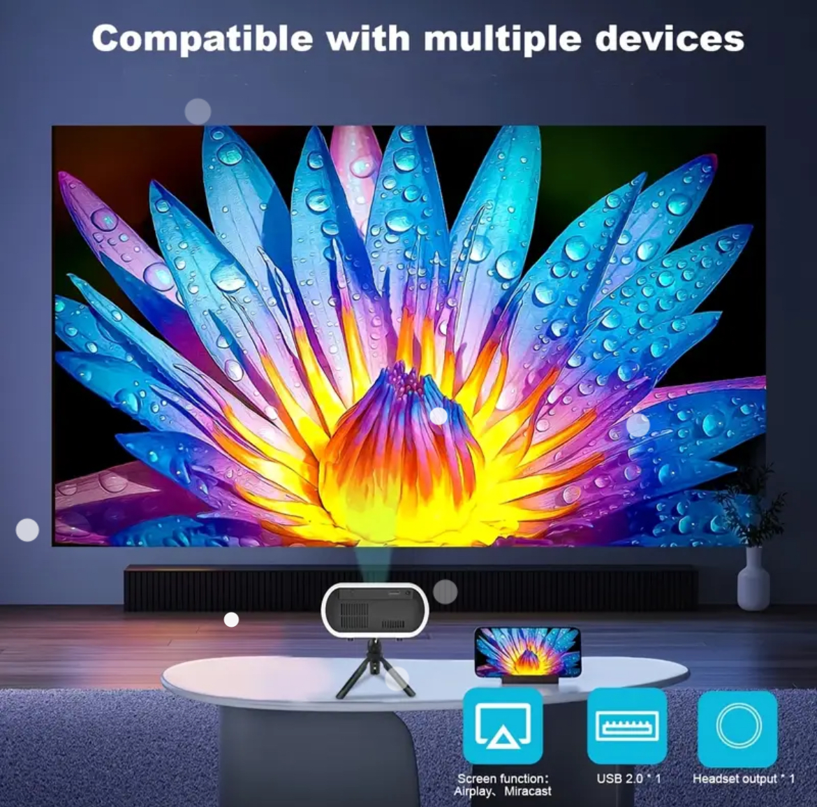Mini Projector, UYOLE 2024 Upgraded Portable Projector, Movie Projector Compatible With IOS/Android Phone/ Tablet/Laptop/PC/TV Stick/Box/USB Drive/Game Console